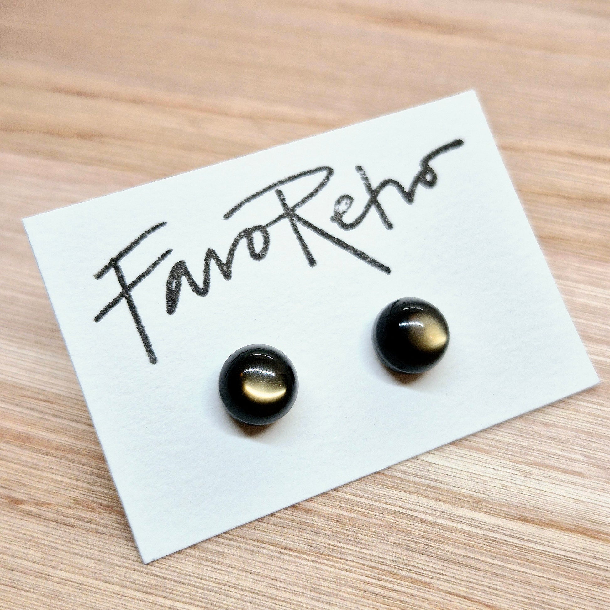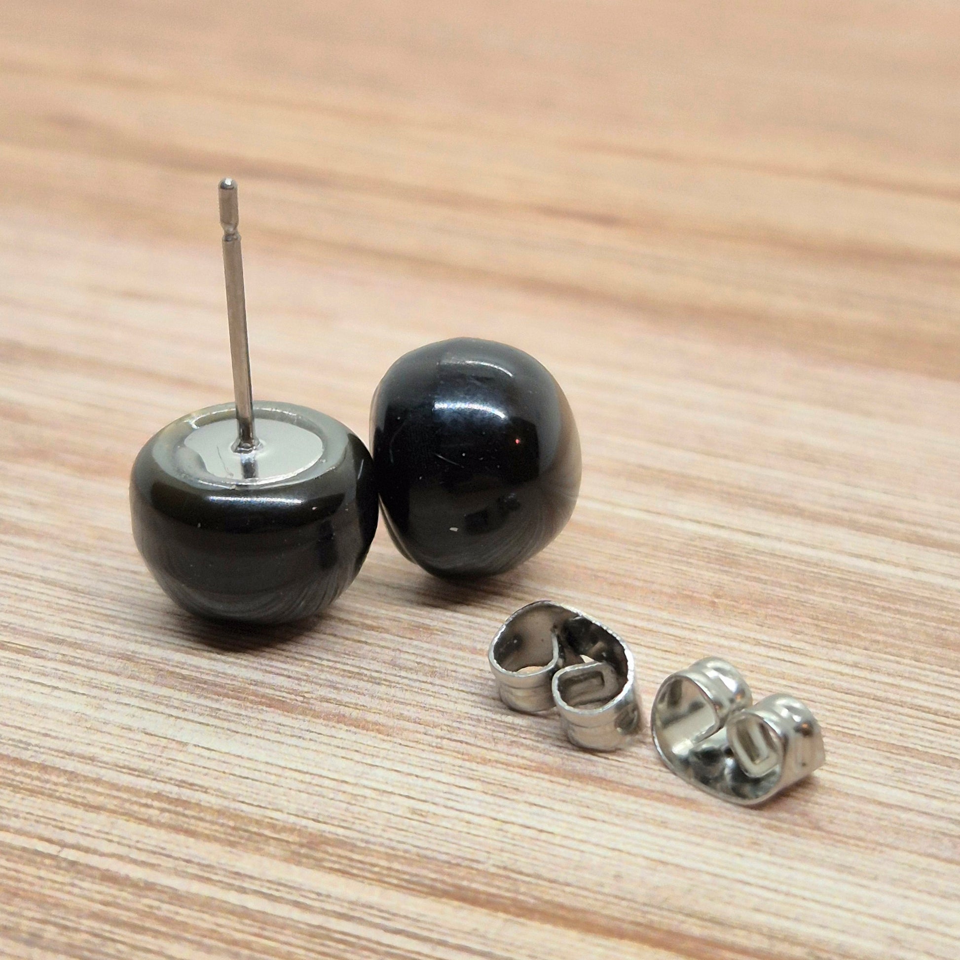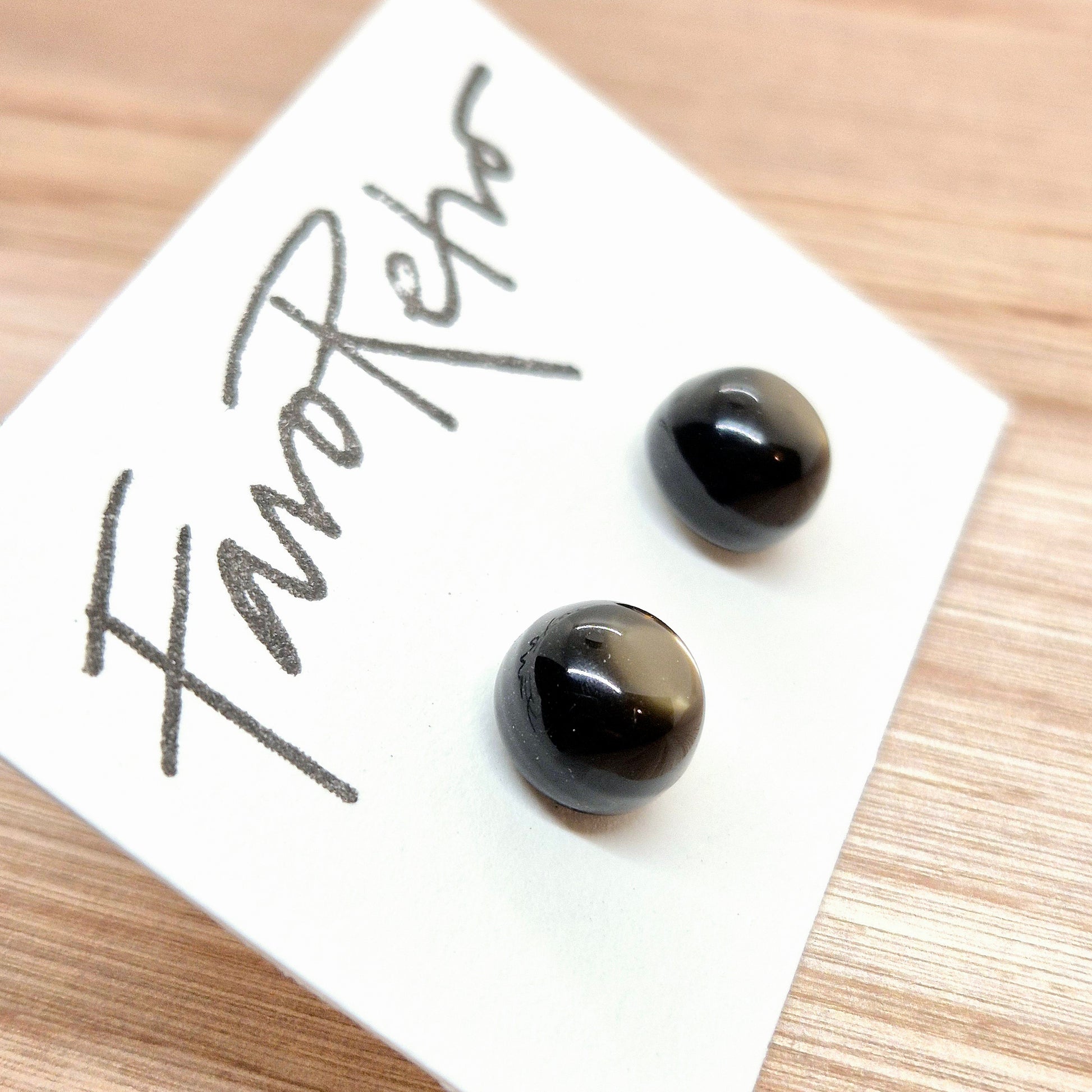 Örhängen av vintageknappar. Kulformade i en mörkt brungrön nyans som är svårfotad. Beroende på vinkel så har de en ljusare lyster i sig.
