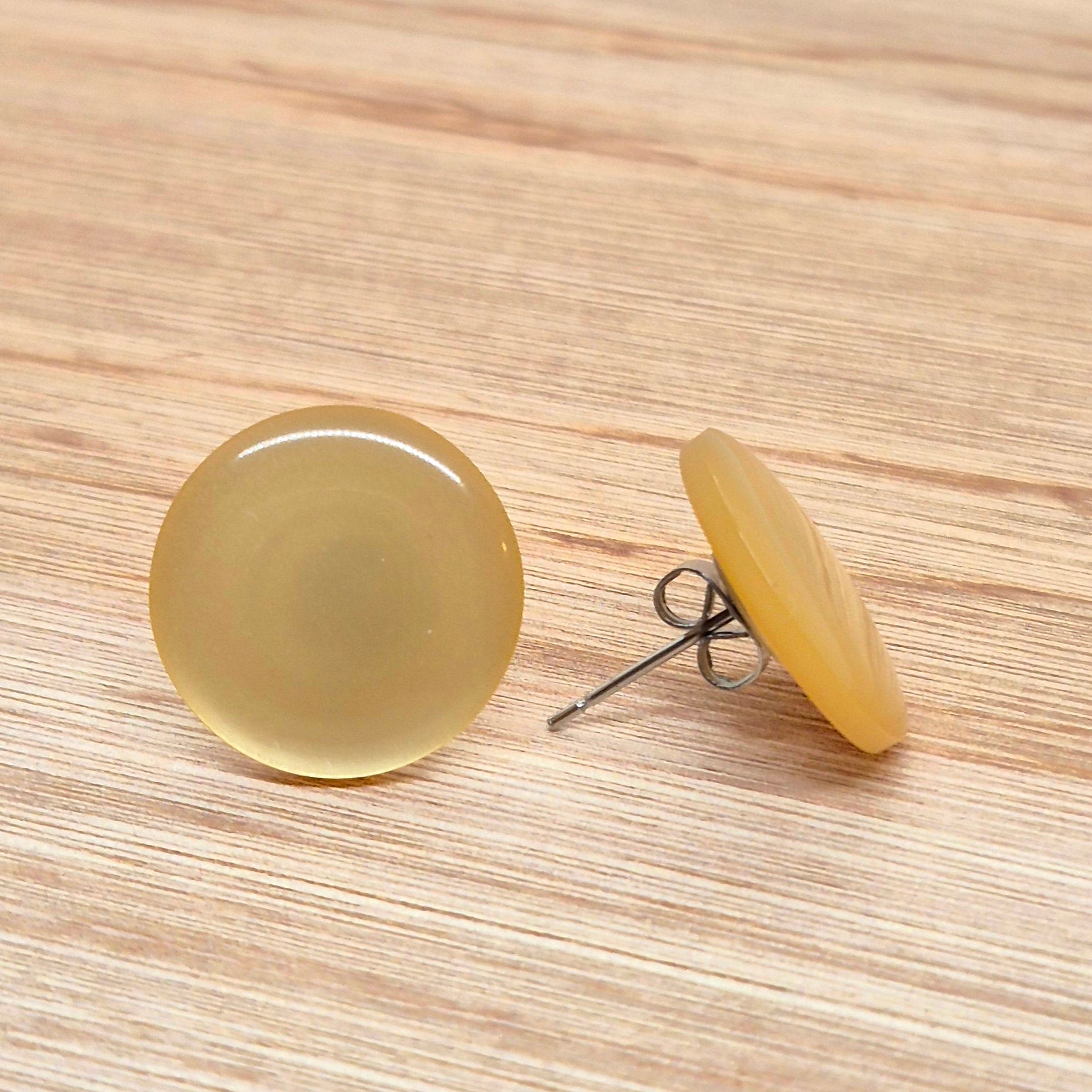 Alla knappar som används är secondhand eller från gamla butikslager. Det innebär att de kan ha spår av användning i form av repor och dylikt. Jag väljer knappar som är i så bra skick som möjligt, men de ser sällan helt nya ut, och det är en del av charmen. De har levt ett tidigare liv.